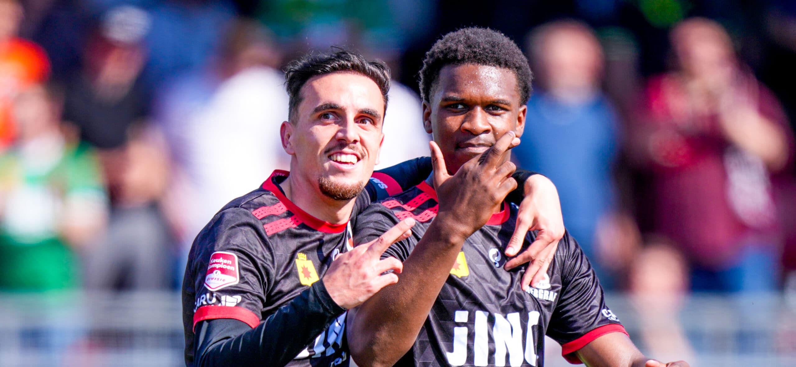 Legenda#ClubGSW / G / VPDV / DTDSVorm1ADO Den Haag ++1917 / 1 / 15255 / 19+36WWWWVW2SC Cambuur2013 / 5 / 24442 / 22+20WWGWGW3De Graafschap2010 / 4 / 63439 / 31+8VWWWVW4Roda JC Kerkrade208 / 7 / 53133 / 29+4WVGVGV5Jong PSV209 / 4 / 73139 / 38+1VVWVGW6Almere City FC209 / 2 / 92941 / 33+8WWWWVW7FC Den Bosch209 / 2 / 92938 / 39-1VVWVWW8Willem II208 / 5 / 72925 / 28-3VWVWGG9FC Emmen208 / 4 / 82837 / 35+2WVWGGW10VVV-Venlo209 / 0 / 112725 / 29-4WWVVVW11Jong FC Utrecht207 / 5 / 82632 / 34-2WVWWGV12RKC Waalwijk207 / 5 / 82631 / 33-2VVVWGV13FC Dordrecht206 / 6 / 82425 / 28-3VVVWGG14FC Eindhoven207 / 3 / 102426 / 39-13WWVWGV15Helmond Sport207 / 2 / 112327 / 34-7VVGWVV16MVV Maastricht206 / 4 / 102225 / 36-11WWGVVV17Jong AZ206 / 2 / 122030 / 40-10VWVVWV18TOP Oss204 / 8 / 82024 / 34-10VGVWGG19Vitesse *197 / 5 / 71431 / 310WGVVWG20Jong Ajax202 / 6 / 121227 / 40-13VVWVVGPromotie EredivisieKeuken Kampioen Play-Offs+ Periodekampioen* 12 punten in mindering